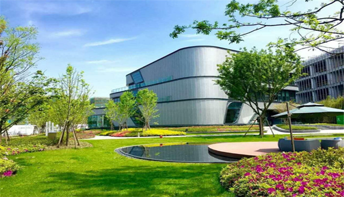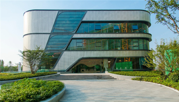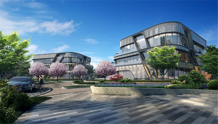 虹桥正荣中心标准化办公的体量坐落于单层或双层的商业群房之上,并于落客区悬挑,形成鲜明的入口标识形态,俯瞰中央绿地。虹桥正荣中心一系列错落的低层独立办公楼被散落分布在中央绿地之中,并结合庭院式绿化的设计。