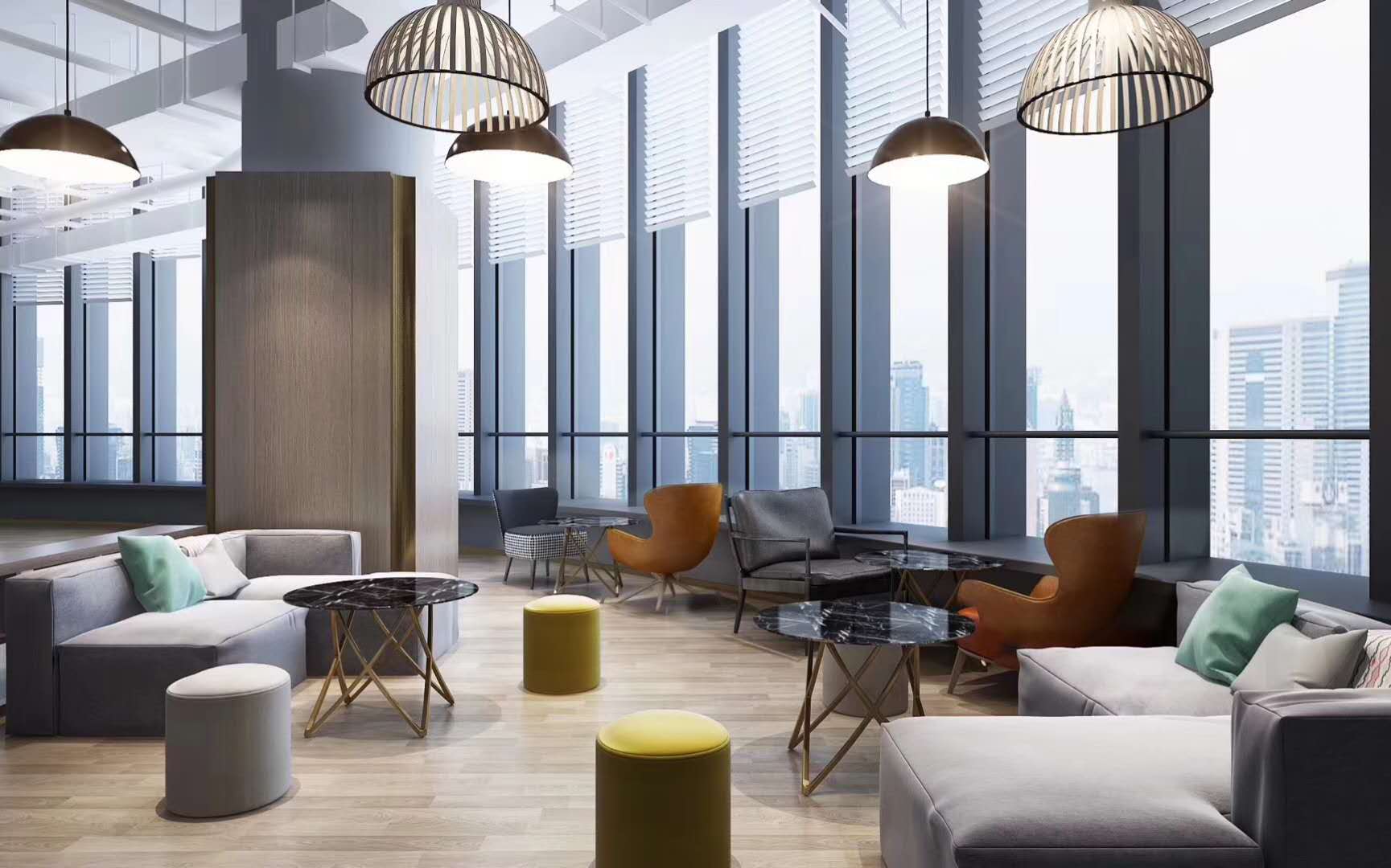 开放式工位是一个敞开式的办公区域,以固定的工位来出租给不同的客户,每一张办公桌配有带锁文件柜和办公椅。