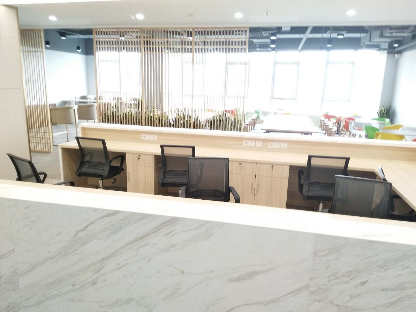 开放式工位是一个敞开式的办公区域,以固定的工位来出租给不同的客户,每一张办公桌配有带锁文件柜和办公椅。