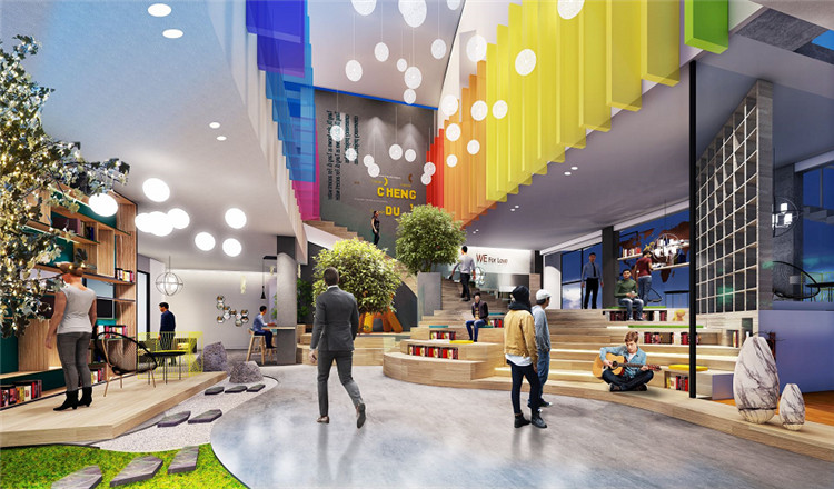 艺术的元素,创造高品位的工作氛围,为企业提供大高度、阔空间、园林